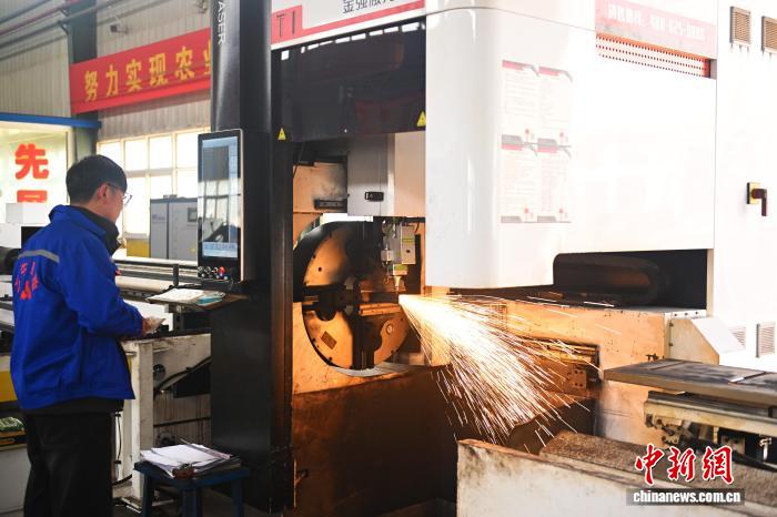 3月24日,正在位于苦肃省定西市安宁区的3牛农体制制无限公司内乱,客商领会各种定造农机产物。中新社记者 李亚龙 摄