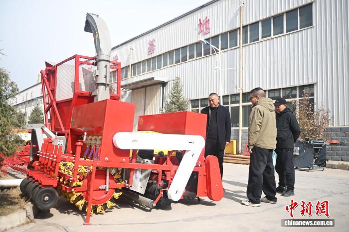 3月24日,正在位于苦肃省定西市安宁区的3牛农体制制无限公司内乱,客商领会各种定造农机产物。中新社记者 李亚龙 摄