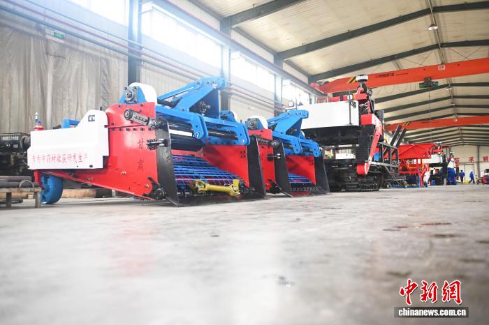 今日正在位于苦肃省定西市安宁区的3牛农体制制无限公司内乱,任务职员停止土豆、中药材农业机器定单消费。中新社记者 李亚龙 摄